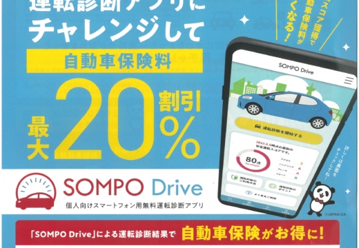株式会社 ルマンオートでは、損害保険ジャパンの運転診断アプリ「SOMPO Drive」をご案内しています。 スマートフォンで運転診断を行うことで安全…