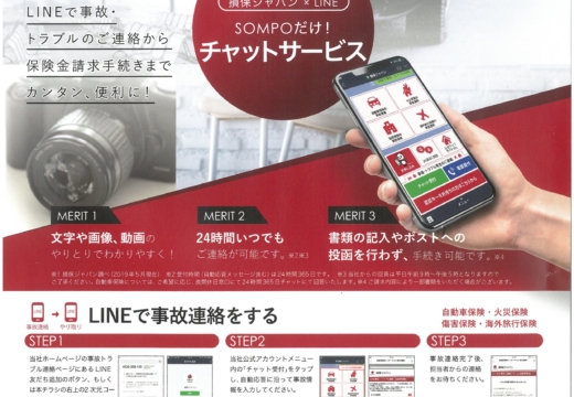 株式会社ルマンオートで取り扱っている損害保険、損害保険ジャパンの「LINEチャットサービス」をご案内します。(※損害保険ジャパン 保険ご契約者限定)…